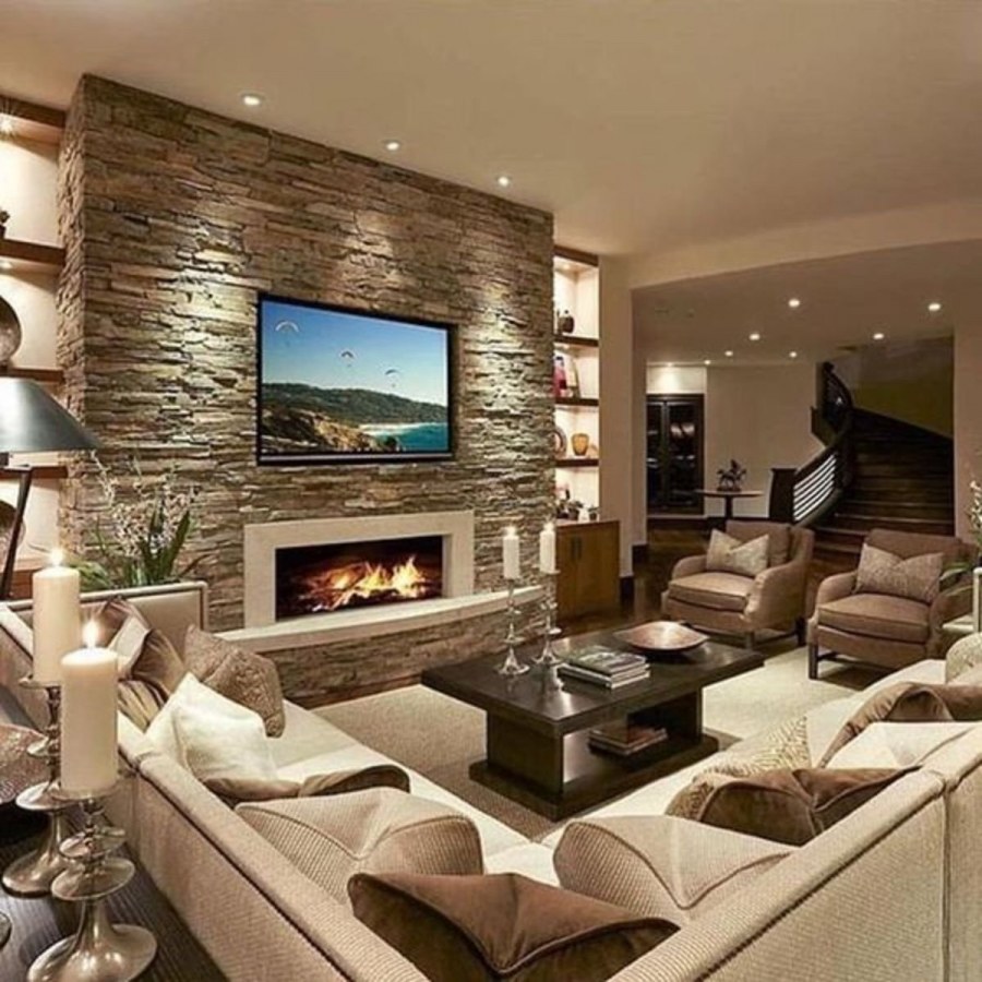 Идеи интерьера гостиной в доме (71 фото)