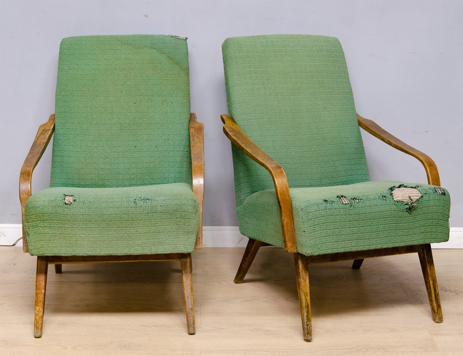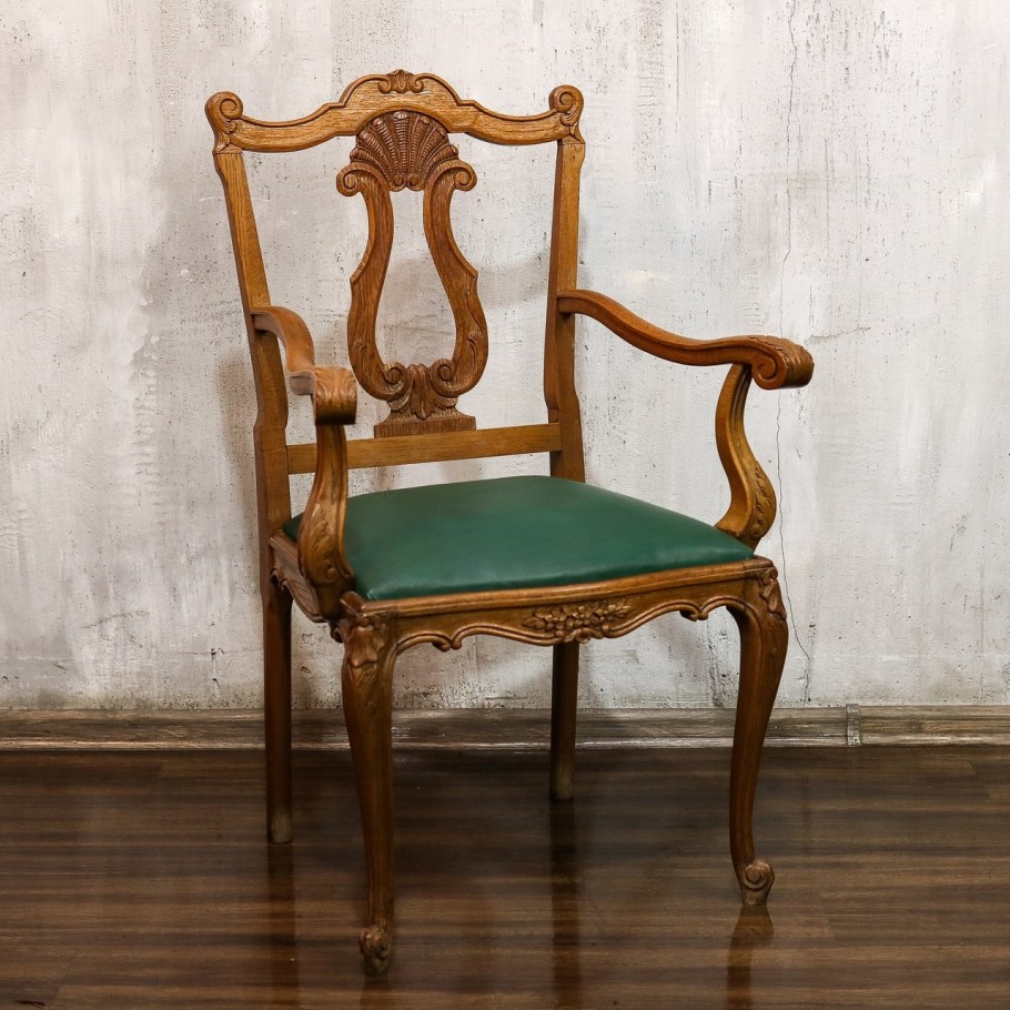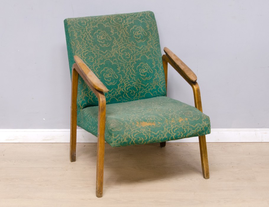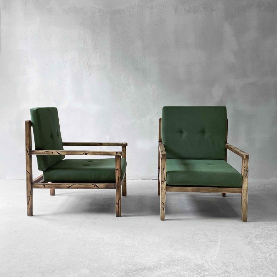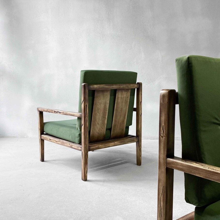 Зеленое кресло винтажное ретро из массива дуба (72 фото)