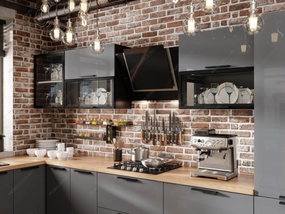 Виктория сб-240 кухня белый/антрацит глянец/базальт