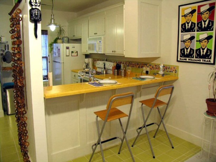 Маленькие кухонные гарнитуры для маленькой кухни с барной стойкой