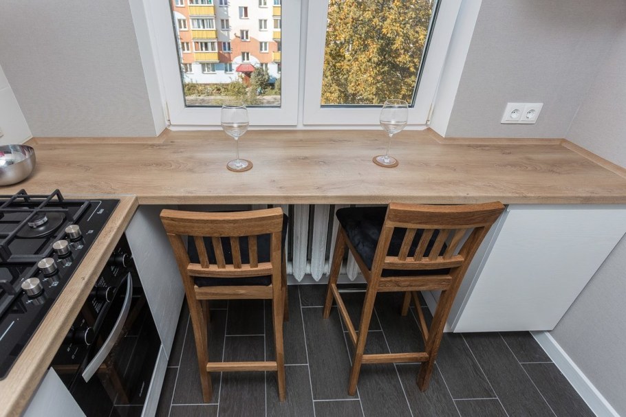 Барная стойка в маленькой кухне в хрущевке вместо стола (63 фото)