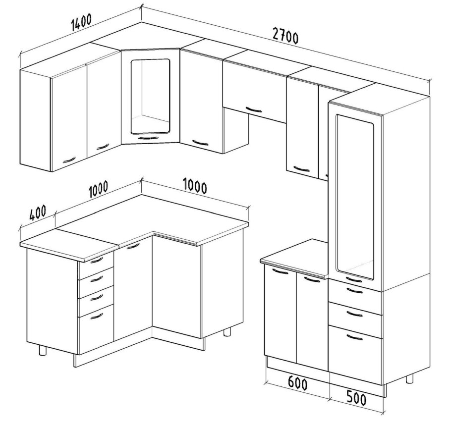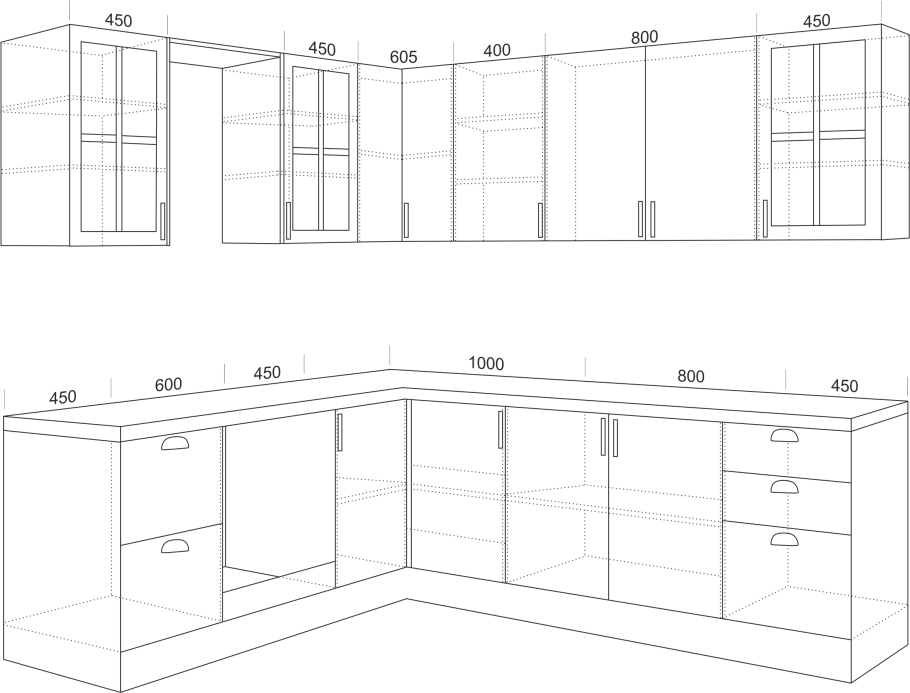Кухонный гарнитур "волна" ваниль глянец/капучино 2200