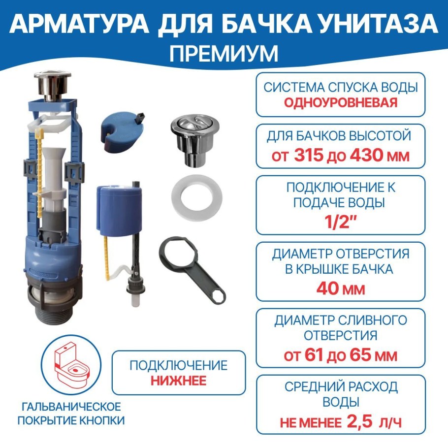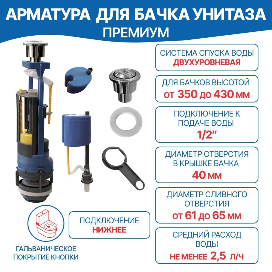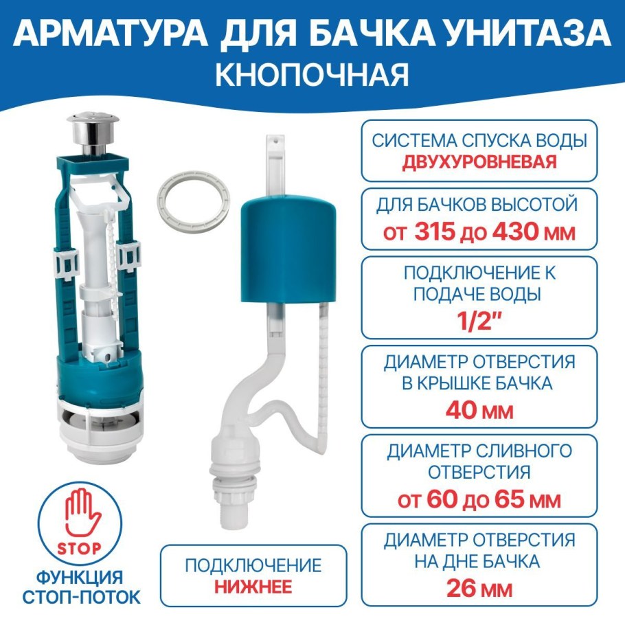 Арматура для бачка унитаза нижняя подводка двухрежимная кнопочная гальваника (65 фото)