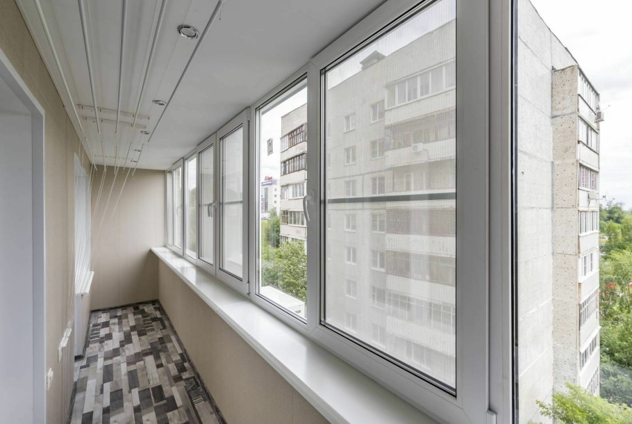 Остекление и отделка длинной лоджии