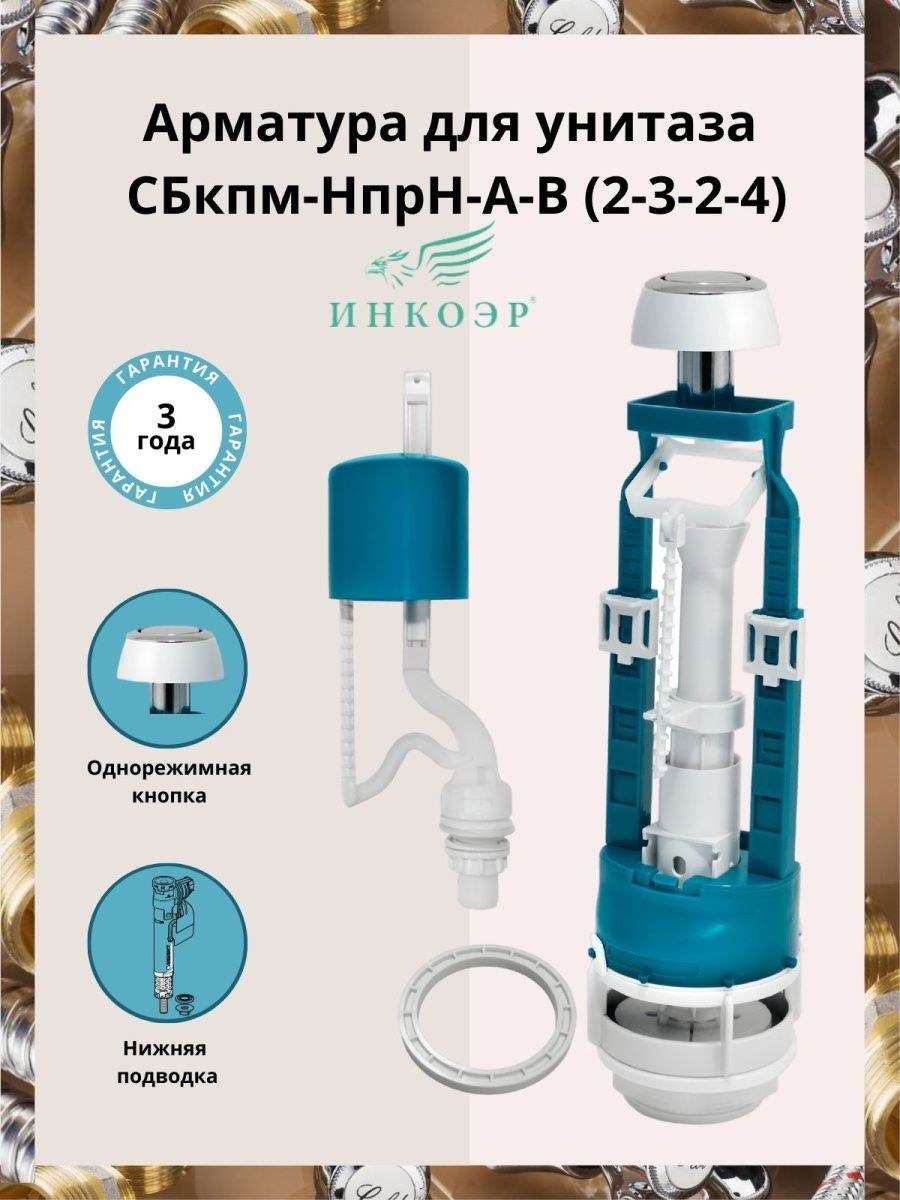 Арматура для бачка Инкоэр сб2м-НПРРФ-ЗЗ-ККРПС di р 1/2" с кнопкой