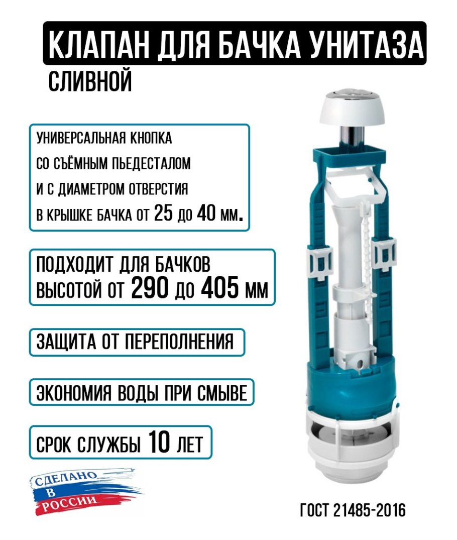 Инкоэр / универсальный спускной клапан для бачка, 2 режим слива