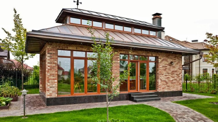 Одноэтажный дом с застекленной верандой