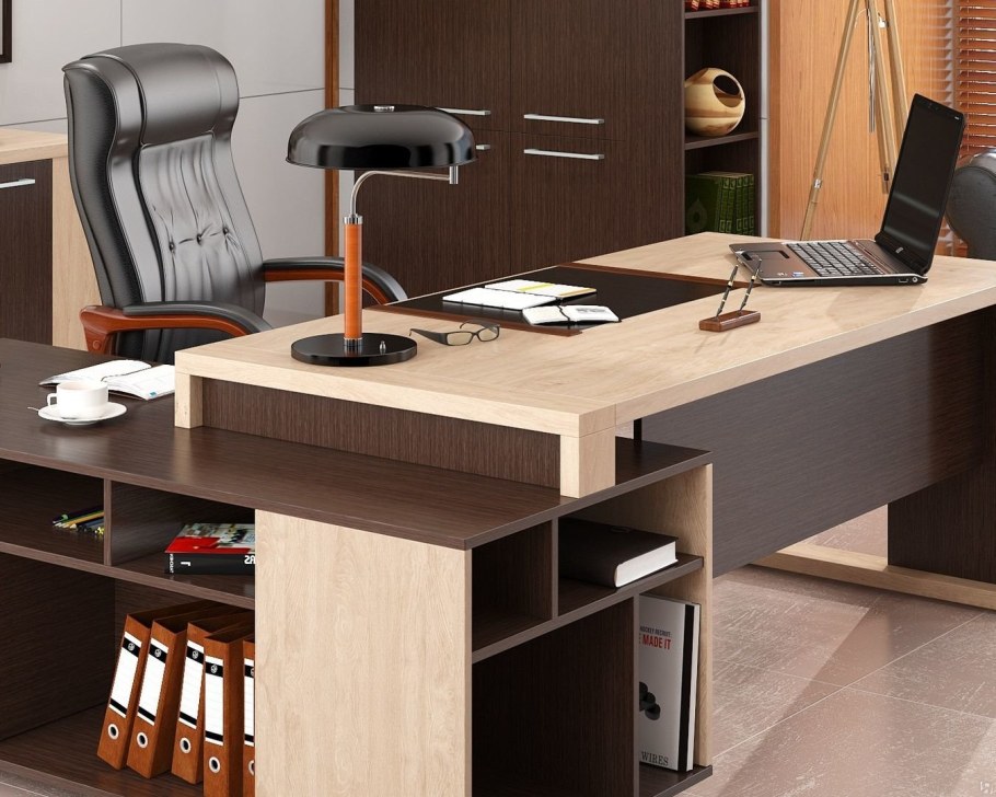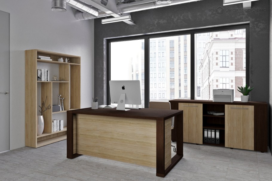 Стол руководителя с тумбой Act 1918(l) дуб Девон/венге магия 1900х1800х750