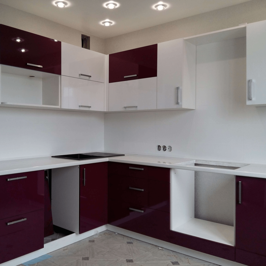 Кухонный гарнитур бордовый с белым