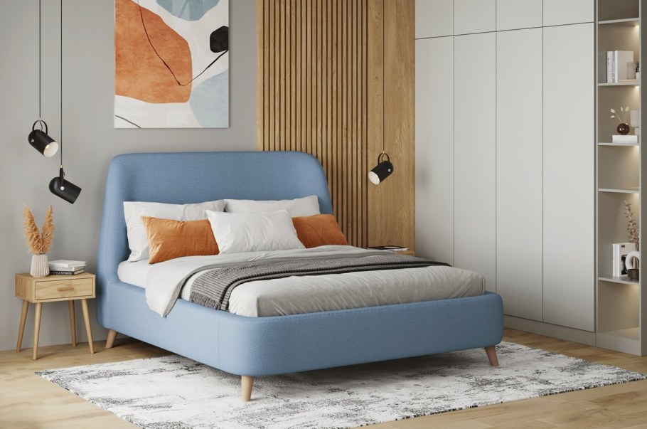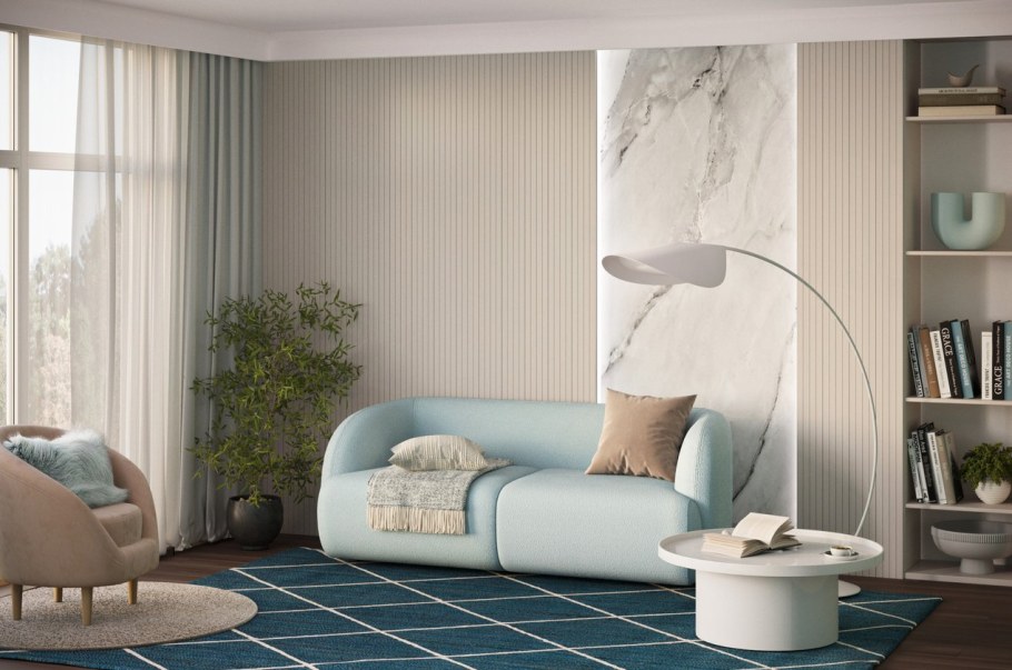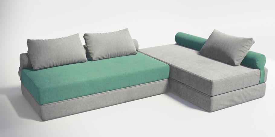 Гостиная в бирюзовых тонах в современном стиле с кухней