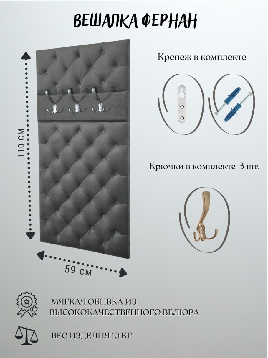 Вешалка настенная в прихожую из велюра, в квартиру melwellen