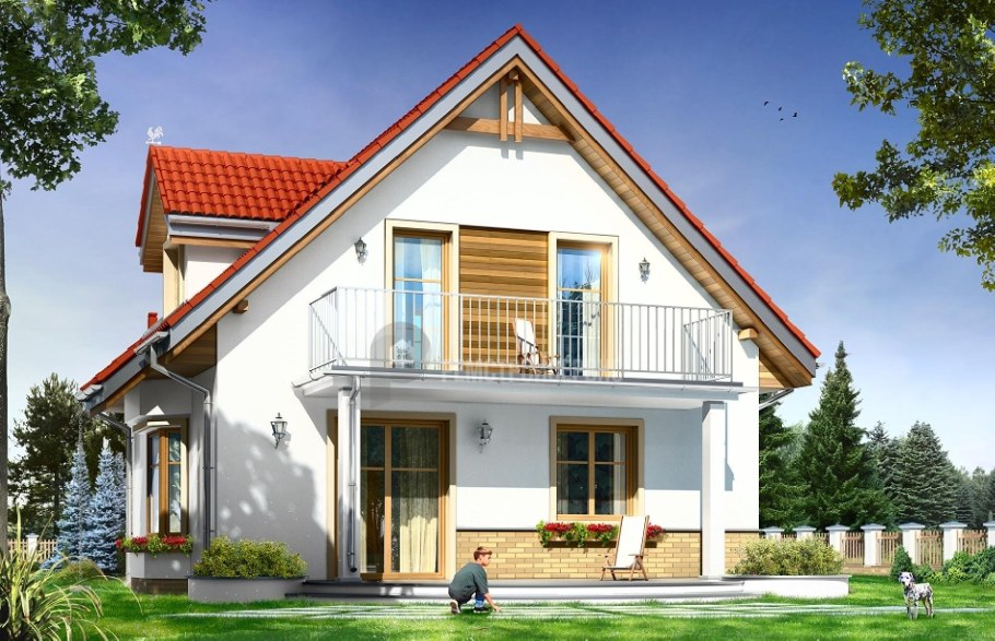 Дом с двускатной крышей и балконом