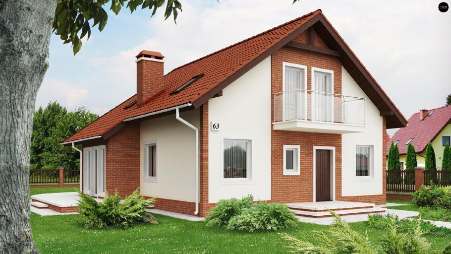 Одноэтажный дом с мансардой и балконом