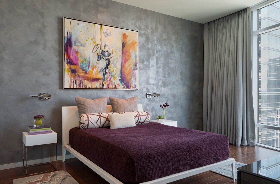 Спальня с декоративной штукатуркой на стенах