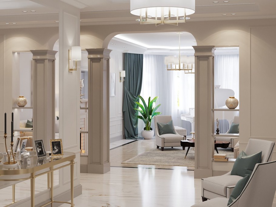 Полуколонны в интерьере гостиной в стиле Неоклассика