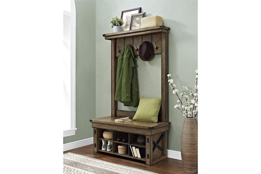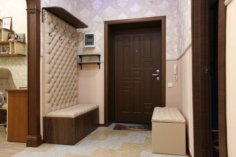Вешалка настенная в прихожую с пуфиком (65 фото)