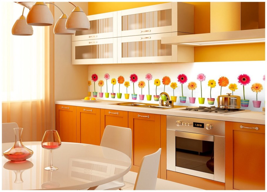 Панель-фартук 0,4мм /955х480мм/ герберы розовый /795,391/