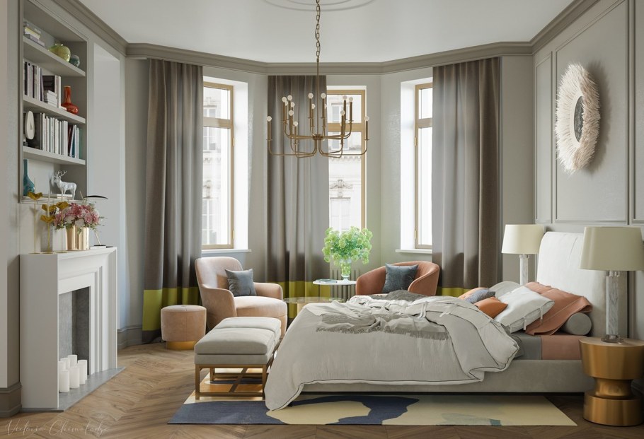 Спальня с эркером современная классика