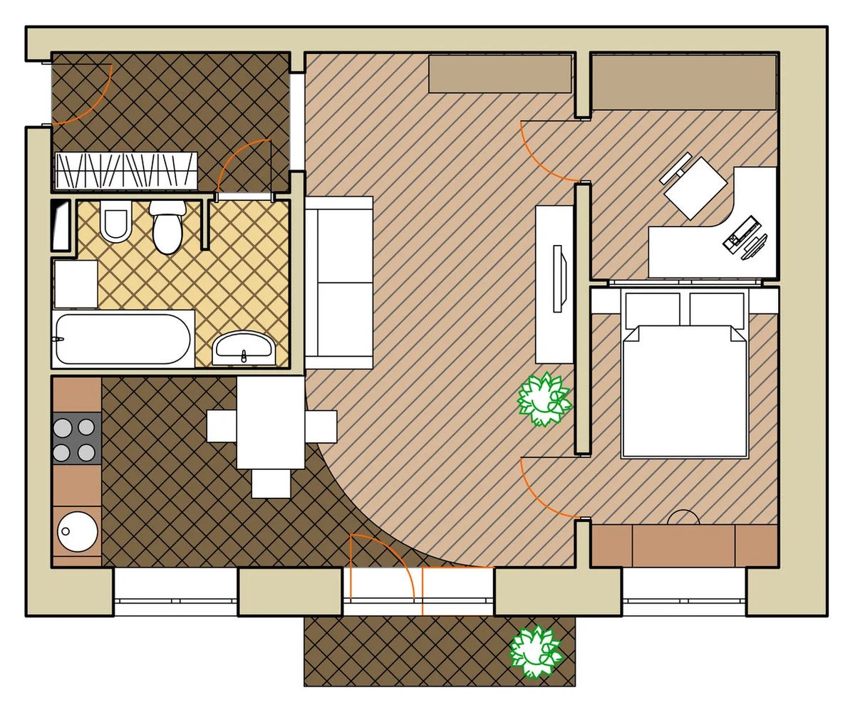 Перепланировка 1 комнатной квартиры 30 кв.м хрущевка