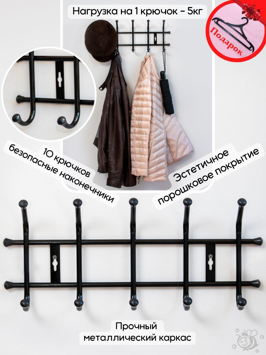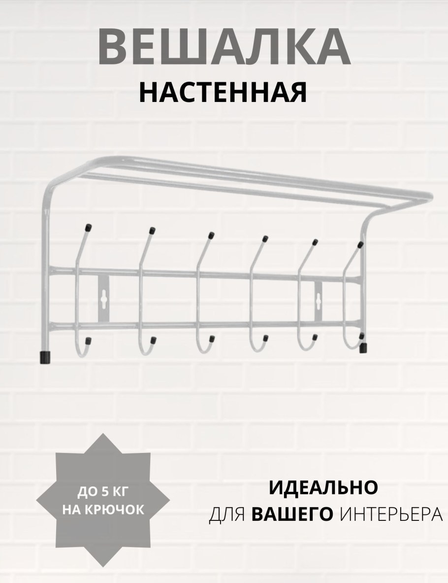 Вешалка настенная с полкой «комфорт», 7 крючков, 45×11×55 см, цвет чёрный