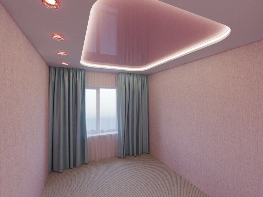 Двухуровневые натяжные потолки с подсветкой в спальню