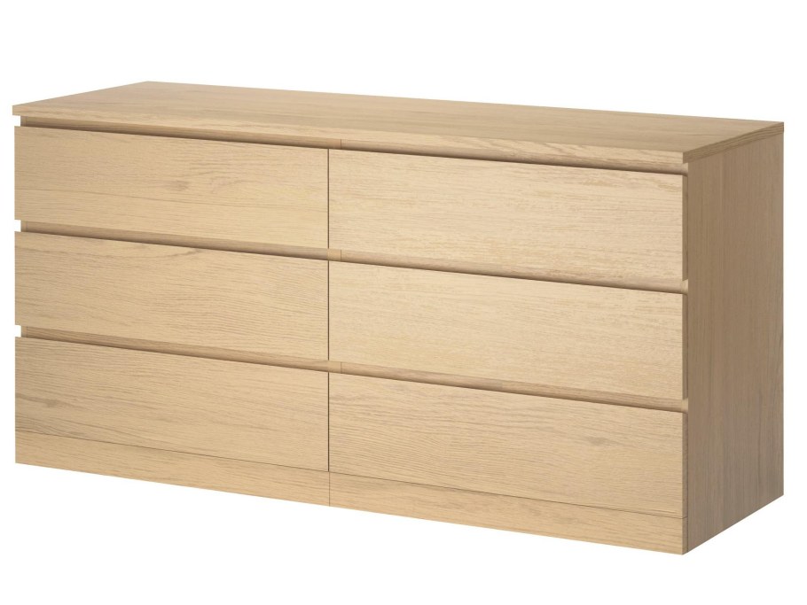 МАЛЬМ комод с 6 ящиками дубовый шпон беленый 80x123 ц
