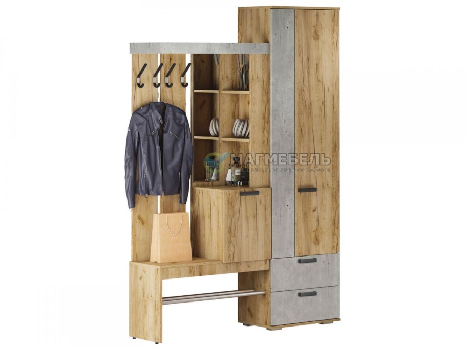 Прихожая Кензо вешалка крафт/Метрополитан грей БТС