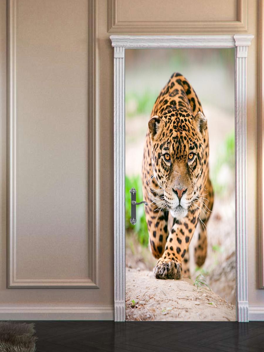Большая интерьерная наклейка на дверь гепард на ветке (70 фото)