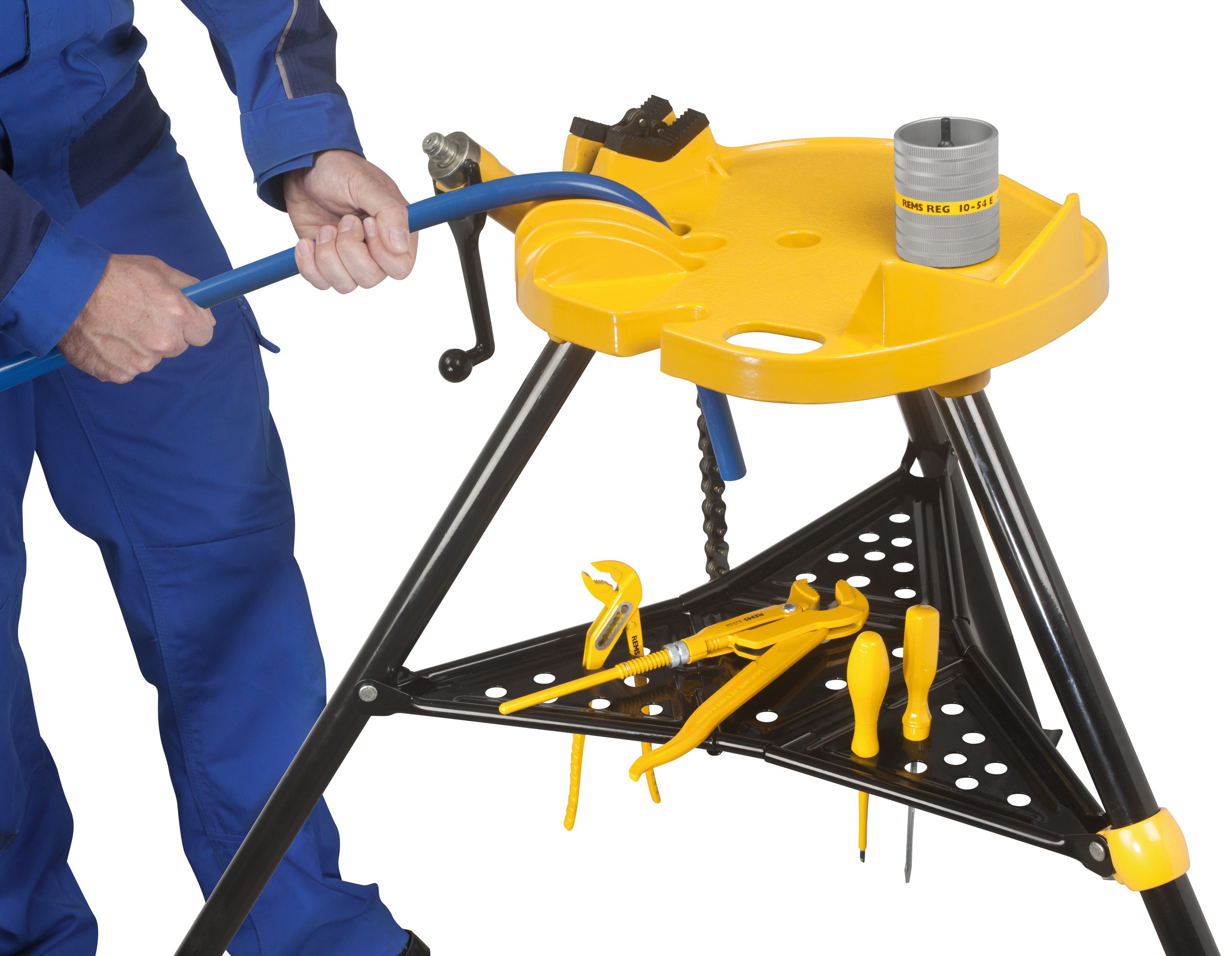 Переносная станция обработки труб с цепными тисками Rems акула 3б