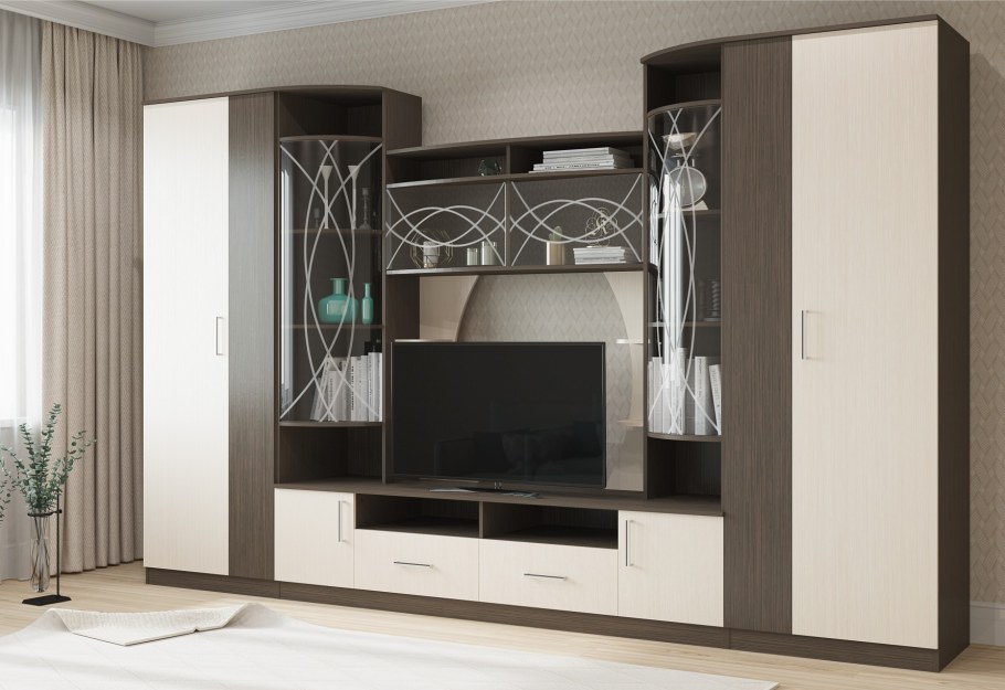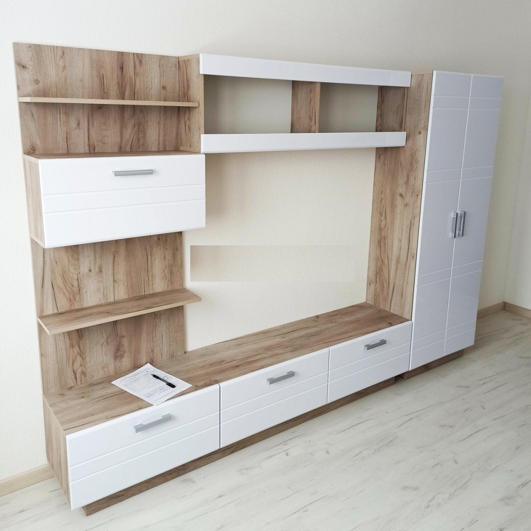 Гостиная Флоренция 5 дуб сонома светлый белый глянец