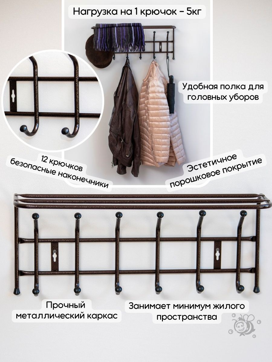 Вешалка настенная 12 крючков (74 фото)