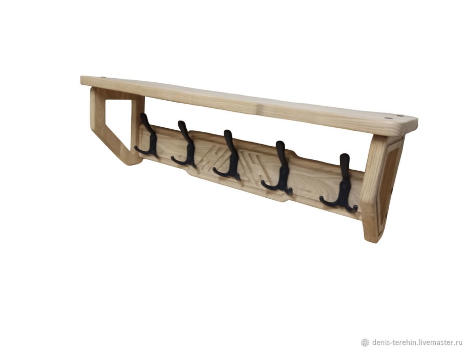 Полка с крючками деревянная