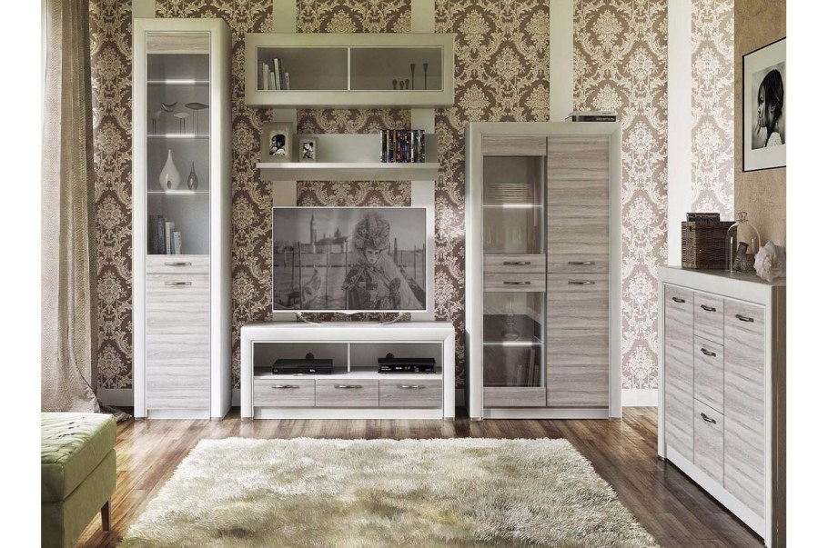 Шкаф с витриной 2v1sl, Monako, цвет сосна Винтаж/дуб Анкона