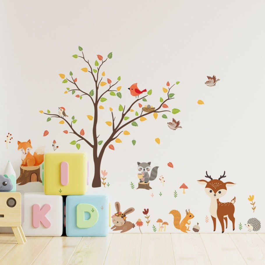 Виниловые настенные стикеры с изображением лесных животных для детской комнаты (71 фото)
