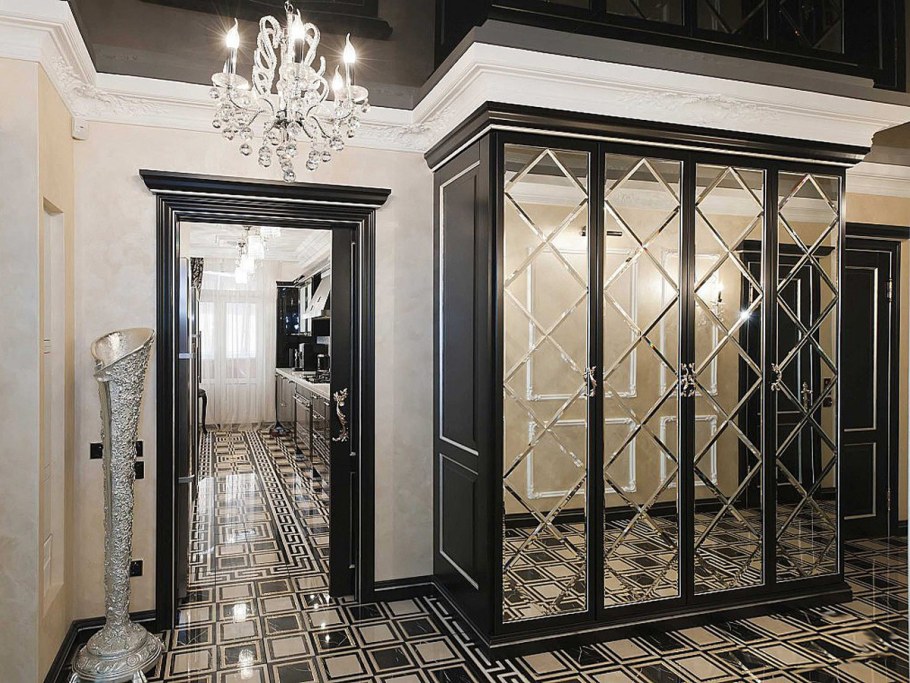 Дверь купе с зеркало серебро с алмазной гравировкой