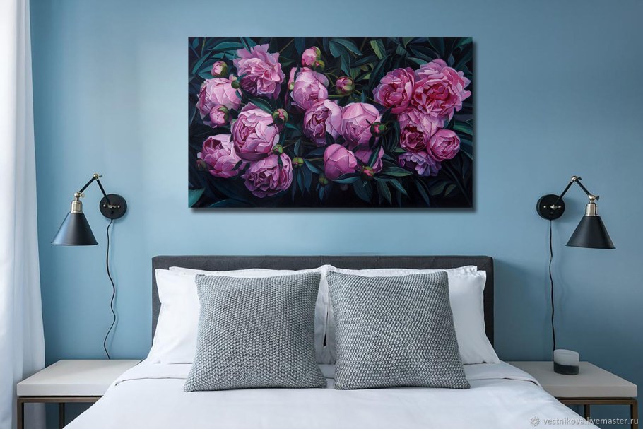 Картина с пионами в спальне (69 фото)