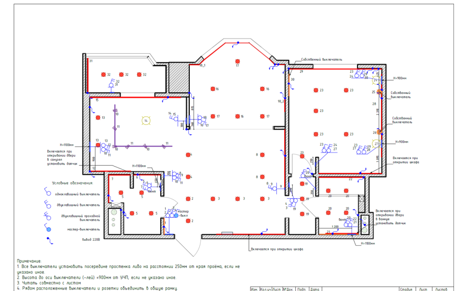 Схема электропроводки 3-х комнатной квартиры в панельном доме