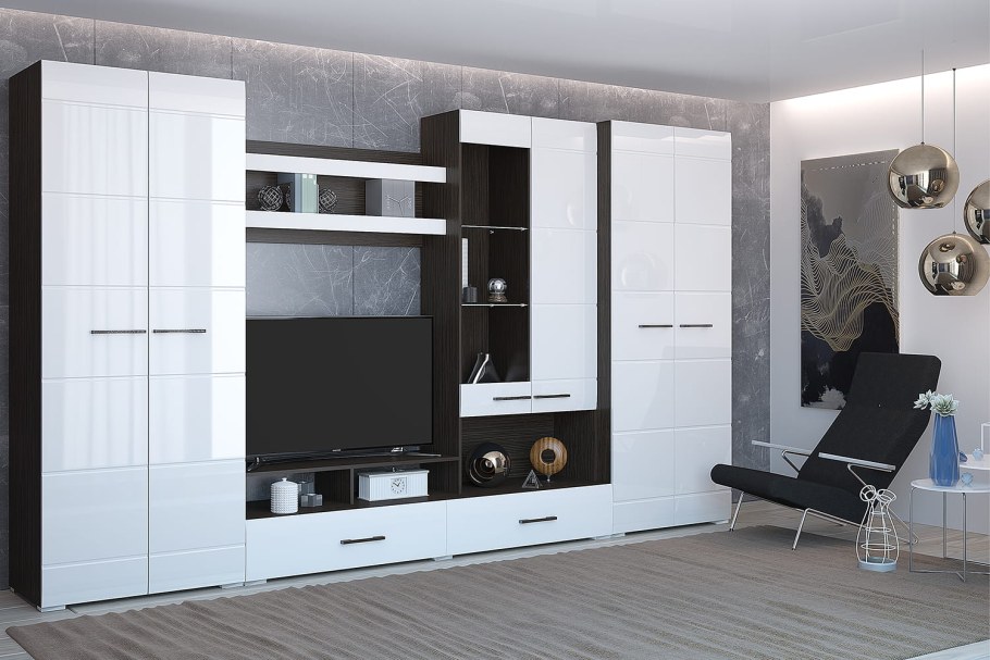 Гостиная Горизонт Ненси-1 венге/белый глянец