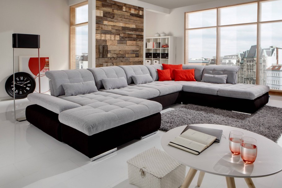 Диван с оттоманкой в интерьере гостиной 18 кв