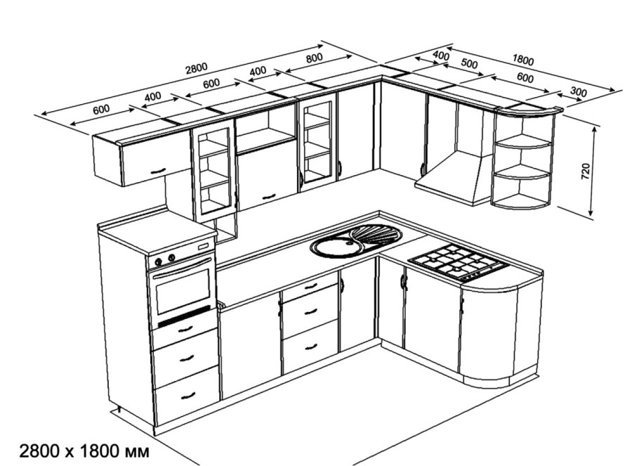 Чертежи кухонных гарнитуров угловых с размерами в хрущевке ,1600-2000мм