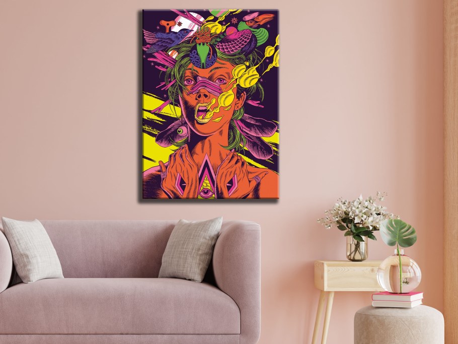 Яркие предметы в интерьере на полотне