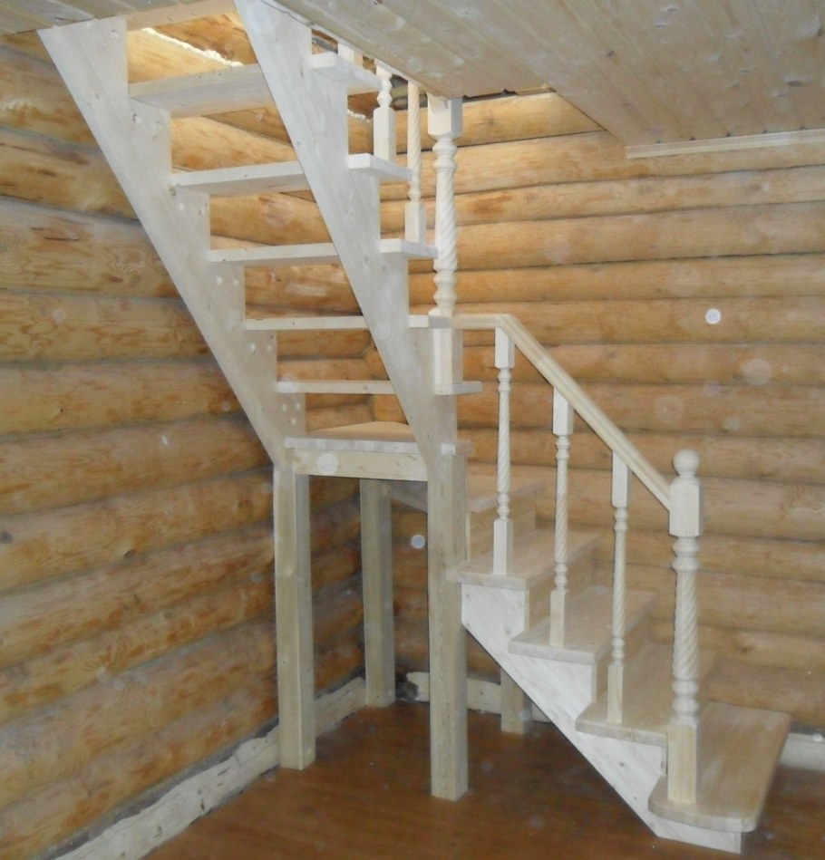 Лестница на второй этаж деревянная на даче