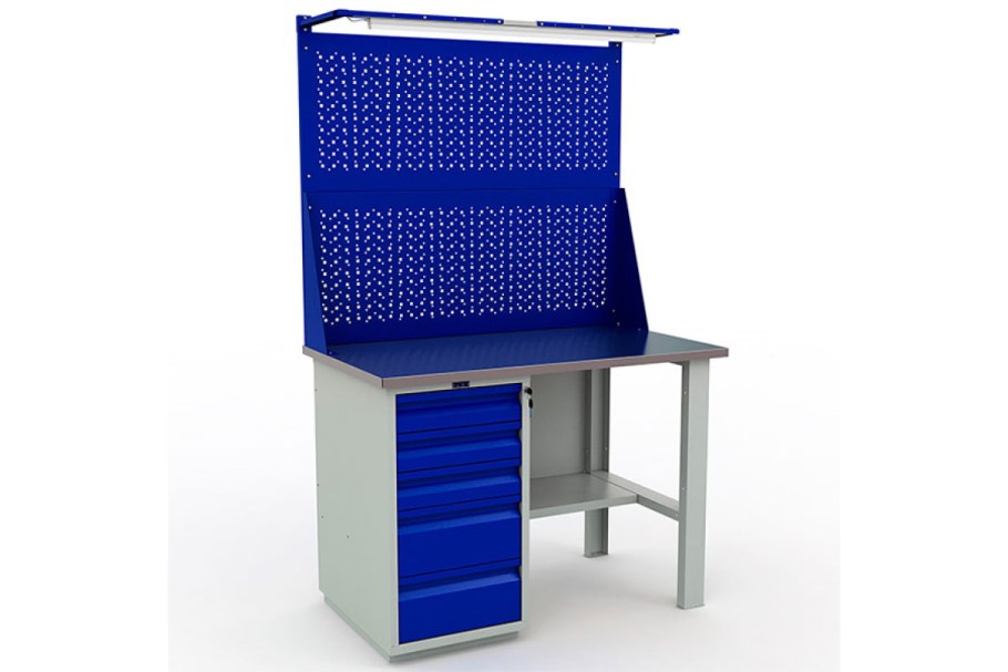 Верстак слесарный однотумбовый с экраном и тисками вст – н 12/60-пс650-э6