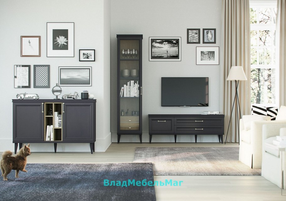 Шкаф витрина Орландо Ангстрем тёмно-серый цвет