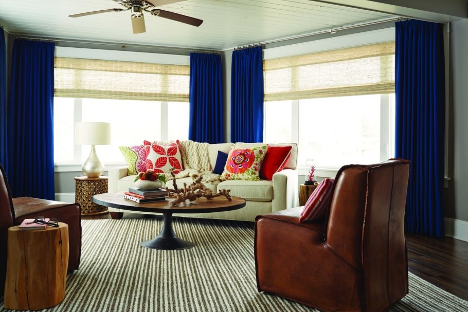 Шторы с синим диваном (67 фото)
