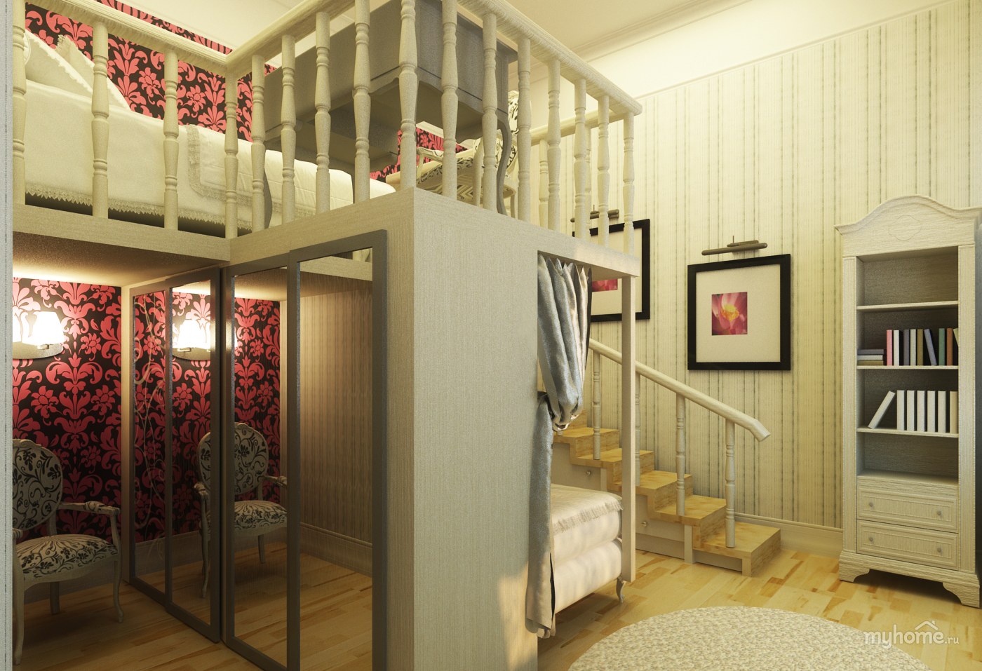 Двухуровневая комната в квартире с высокими потолками (79 фото)