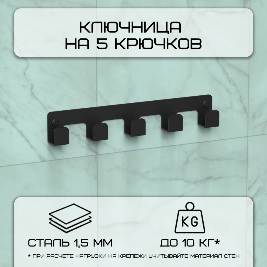 Вешалка настенная с полкой «комфорт», 7 крючков, 45×11×55 см, цвет чёрный
