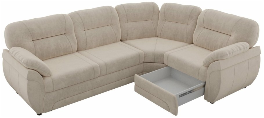 Угловой диван-кровать pushe «Бруклин» бежевый, велюр 2970х2050х104 мм