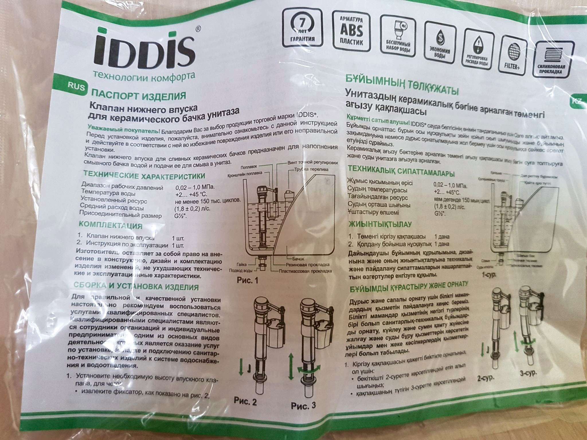Впускной клапан IDDIS Нижний подвод f012400-0007 инструкция