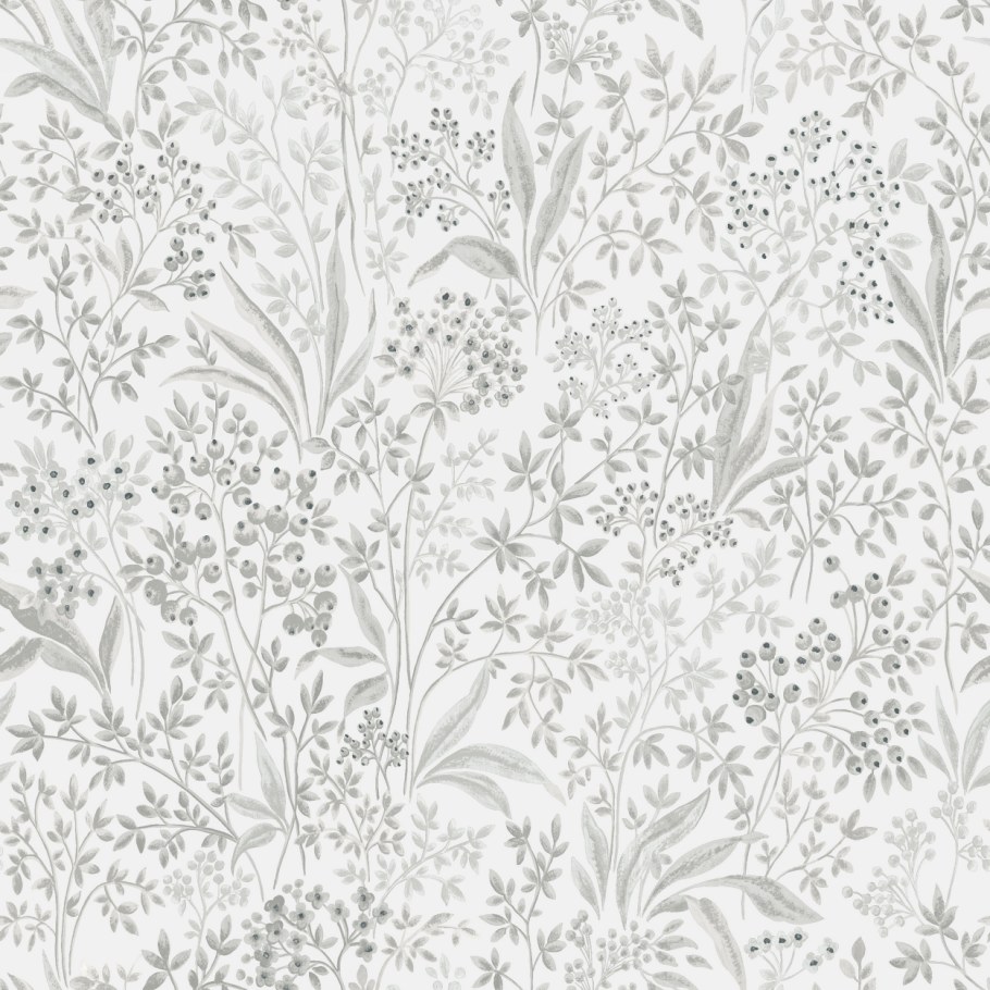 Обои белые с растительным орнаментом